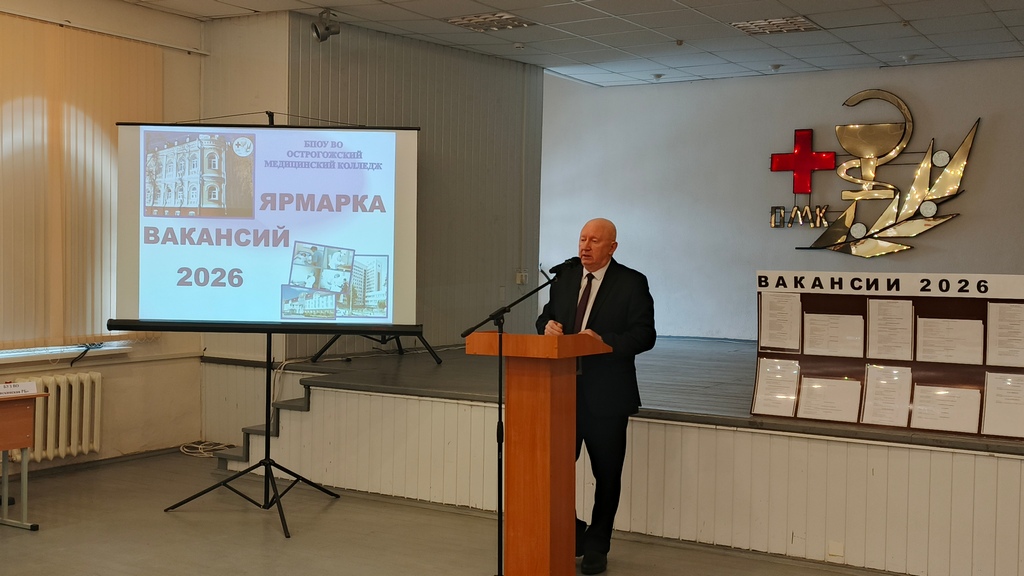 25.02.26 г. в БПОУ ВО «Острогожский медицинский колледж» прошла Ярмарка вакансий 2026. С информацией об изменениях в законодательстве РФ, связанных с наставничеством в медицинских организациях при трудоустройстве выпускников в 2026 году, выступил директор колледжа Борисов Николай Фёдорович. В работе Ярмарки вакансий приняли участие медицинские организации города Воронеж и Воронежской области: БУЗ ВО «Воронежская городская клиническая поликлиника №3», ЧУЗ «КБ «РЖД – Медицина г. Воронеж» Поликлиника №1, Медицинская компания «Эра», аптечная сеть «Вита» г. Воронеж и др.
