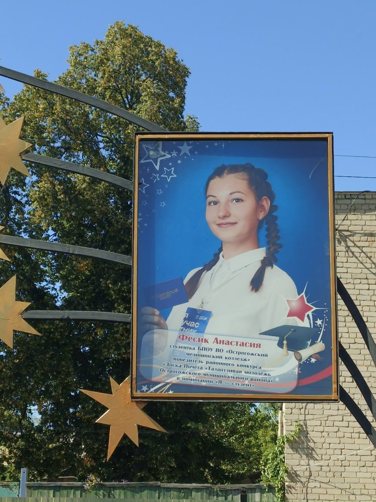 29 августа 2025 года на торжественном мероприятии, посвященном 373-ой годовщине со дня основания г. Острогожск, состоялось чествование победителей районного конкурса «Доска Почета. Талантливая молодежь Острогожского муниципального района». Наш колледж представляла студентка Фесик Анастасия, одержавшая победу в номинации «Я - студент». Эта награда – результат ее упорного труда, выдающихся способностей и настоящей целеустремленности.