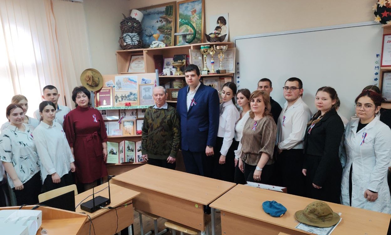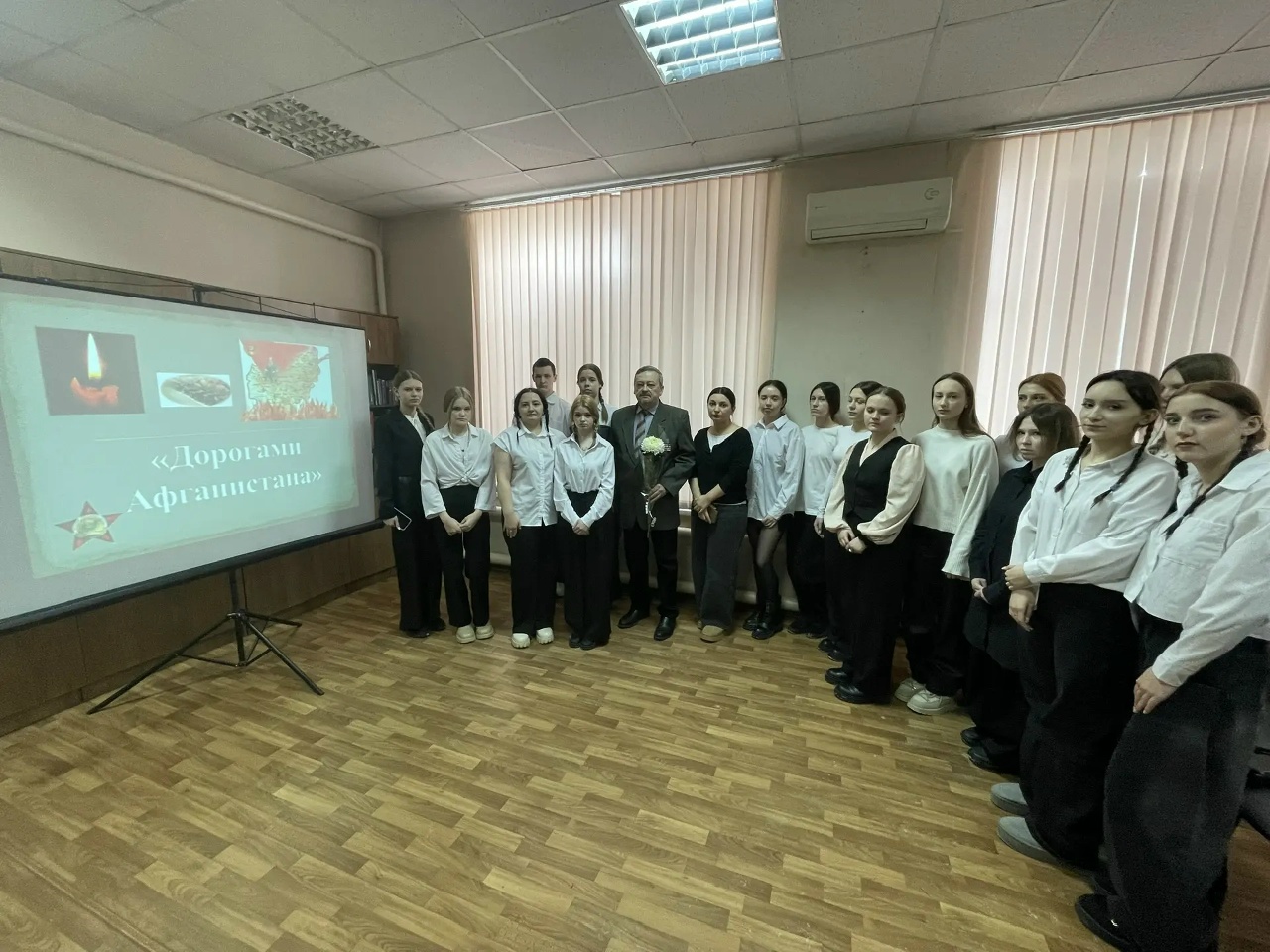 13 февраля 2026 года студенты организовали и провели урок мужества с участием воина-интернационалиста, гвардии майора военной разведки в отставке, ветерана боевых действий в Исламской Республике Афганистан — Владимира Ильича Гречаника, который стал не просто воспоминанием об исторических событиях, но и живым уроком истории.
