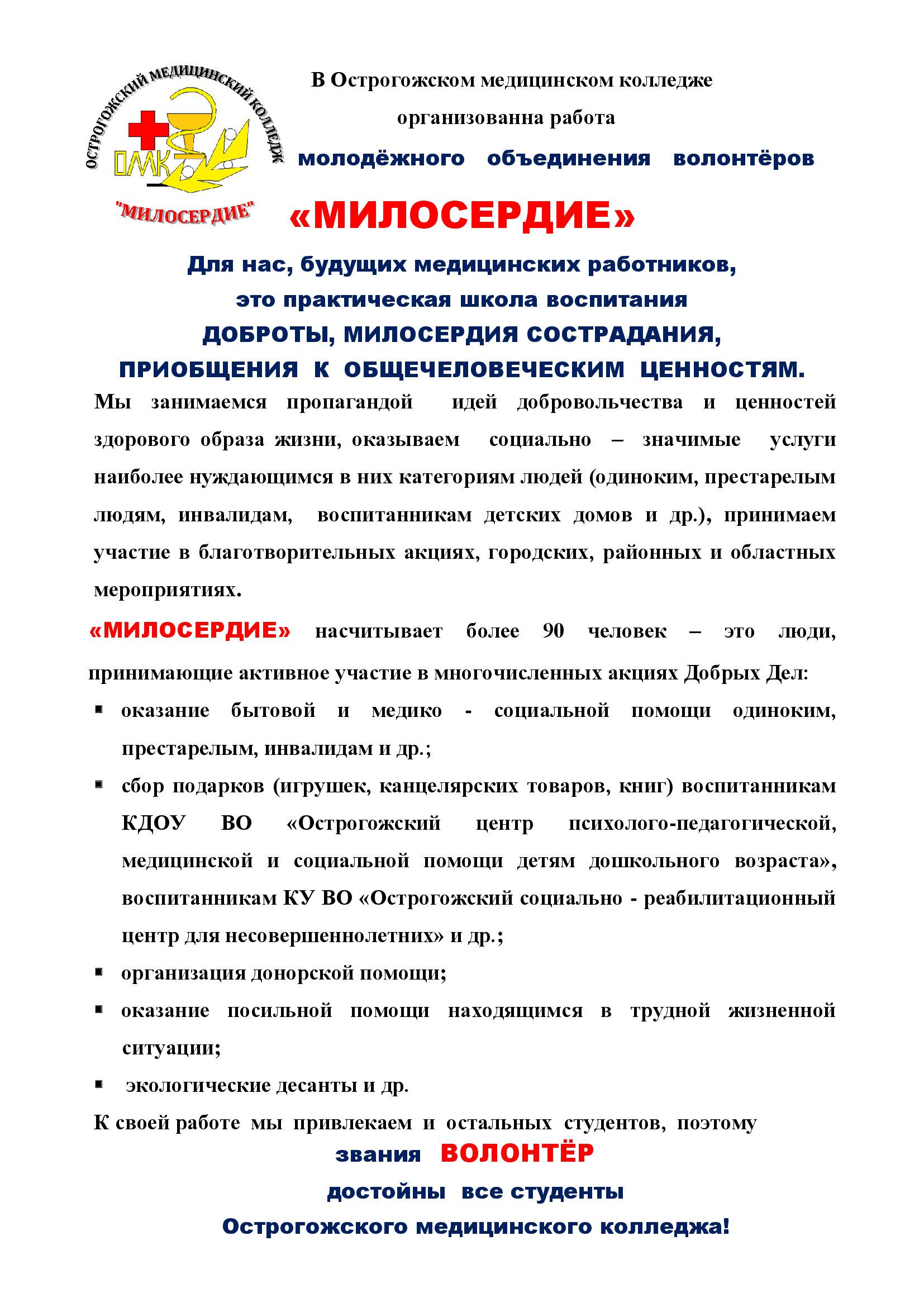 Волонтерский отряд "Горячие сердца"(направление "Милосердие")